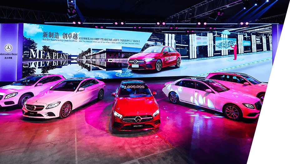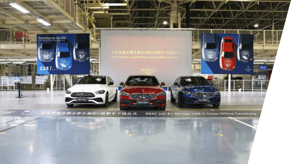 第200万辆整车下线 The two millionth vehicle rolled offline 全新长轴距A级轿车下线 The all-new A-Class L rolled offline 北京奔驰前驱车工厂落成 The MFA Plant was completed